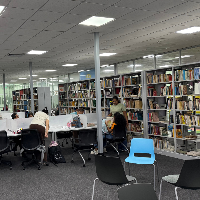 La Biblioteca de la Ciudad de las Artes es un espacio dedicado al conocimiento, la investigación y la inspiración creativa. Concebida como un punto de apoyo fundamental para estudiantes, artistas y docentes, esta biblioteca resguarda libros, partituras, documentos y recursos especializados que enriquecen la formación artística y académica. Su ambiente tranquilo y funcional invita a la lectura, el estudio y la reflexión, fomentando el pensamiento crítico y el desarrollo intelectual. Más que un lugar de consulta, la biblioteca es un centro de encuentro entre la teoría y la práctica artística, donde las ideas se transforman en proyectos y las referencias se convierten en nuevas creaciones. Este espacio fortalece el acceso a la cultura y al saber, reafirmando el compromiso de la Ciudad de las Artes con la educación, la memoria cultural y el crecimiento de las futuras generaciones creativas de Panamá.